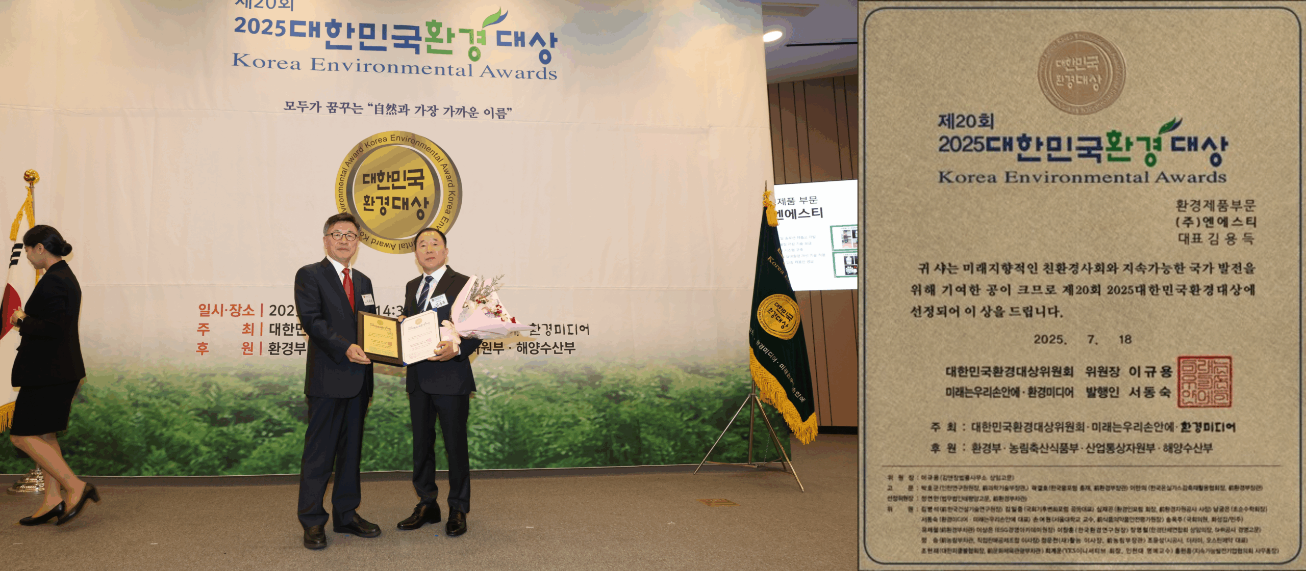 🏆 환경부 후원 「2025 대한민국환경대상」 환경제품 부문 수상 – 국민 건강 기여와 기술력 공식 인정